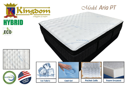 Presenting the Aria PT Collection – a revolutionary HYBRID Mattress featuring Cool-Touch Fabric, Individually Wrapped Pocket Coils, and Foam Encasement. Prepare for the ultimate sleep experience.