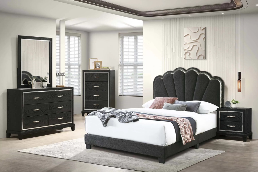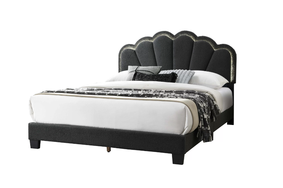 • Add to the sophisticated and modern interior style of your home with a fully upholstered bed design with tufting details in a rich dark shade of charcoal color.