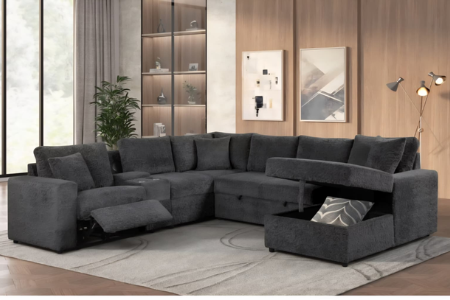 Sectional Sofa Bed with Storage chaise, power recliner chair and Bluetooth speaker Console.
